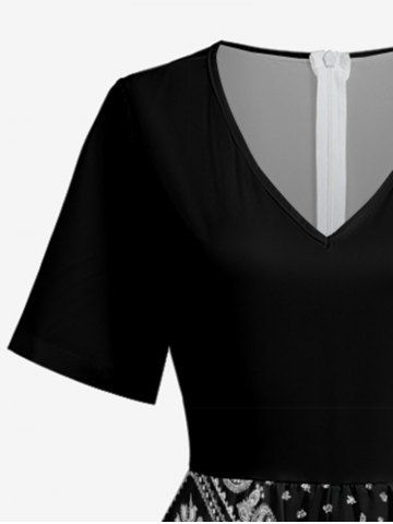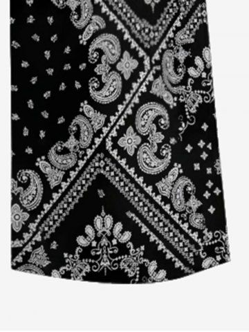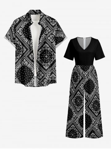 Plus Size Paisley Floral Scarf Print V Neck Hawaii Wide Leg Jumpsuit - Black - Xs