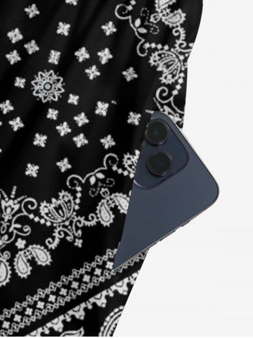 Plus Size Paisley Floral Scarf Print V Neck Hawaii Wide Leg Jumpsuit - Black - S