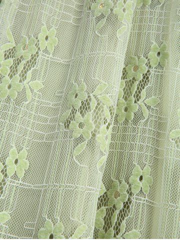 Floral Lace Panel Twist A Line Dress - Light Green - L