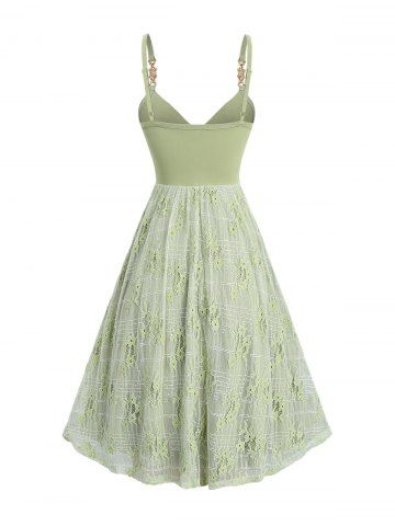 Floral Lace Panel Twist A Line Dress - Light Green - Xxl