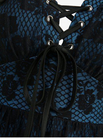 Lace Dresses > Rose Flowers Fishnet Lace Grommets Lace-up Heart Buckle Tank Dress
