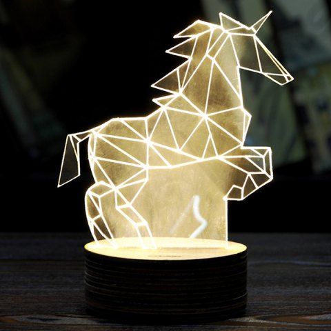 Unicorn 3D LED Wooden Base Sleeping Atmosphere Visual Night Light - White