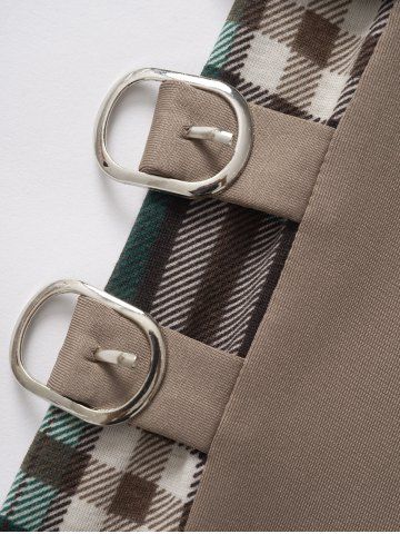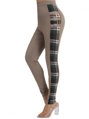 Plaid Print Panel Buckle Long Leggings - Coffee - M | Us 6