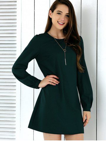 Brief Lantern Sleeve Pure Color Dress - Blackish Green - L