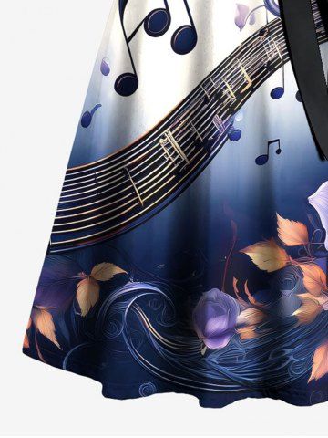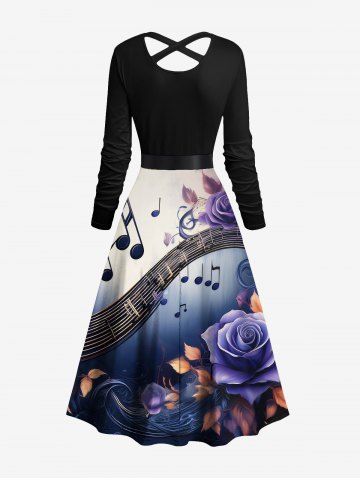 Rose Flower Leaf Music Symbol Print Ombre Crisscross A Line Dress with Tied Belt - Multi-a - M