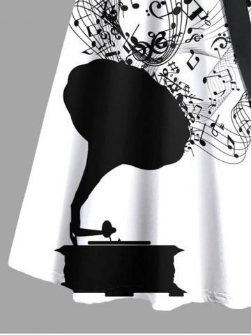 Trumpet Music Symbol Print Two Tone Crisscross A Line Dress with Tied Belt - Black - M