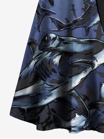 Underwater World Sharks Print Crisscross Hawaii Dress With Belt - Multi-a - 3xl