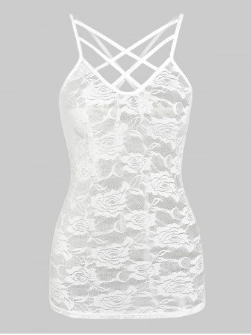Christmas Deer Snowflake Print T-shirt with Flower Lace Criss-cross Cami Top - Red - Xl