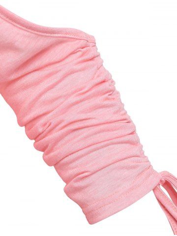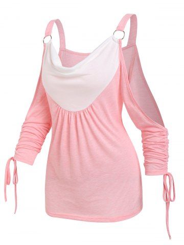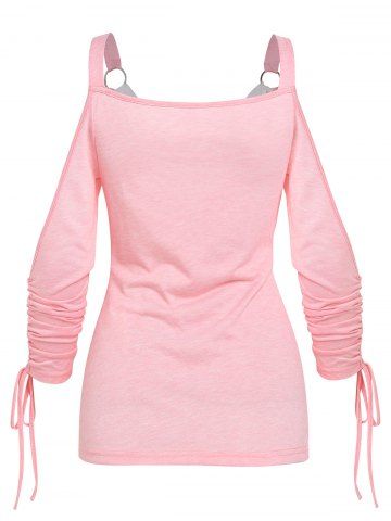 Cold Shoulder O-ring Cinched Contrast T-shirt - Light Pink - Xl