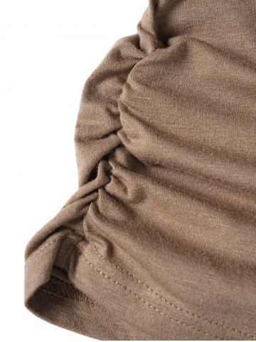 Cold Shoulder Ruffle Plain Color Metal Decor Long Sleeve Casual Blouse - Coffee - S