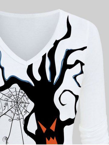 Devil Tree Owl Spider Web Print Halloween Long Sleeves T-shirt - White - 2xl