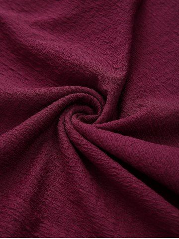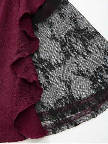 Floral Lace Patchwork Flare Sleeve Ruffles Top with Removable Belt - Deep Red - S