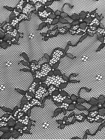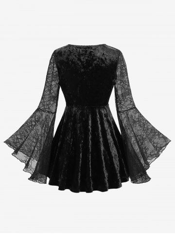 Flower Lace Flare Sleeve Embossed Velvet Strappy Top - Black - S