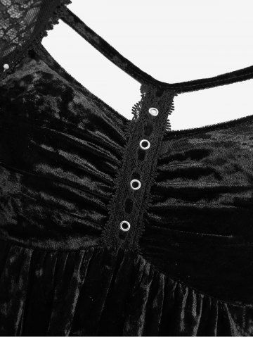 Flower Lace Flare Sleeve Embossed Velvet Strappy Top - Black - Xl