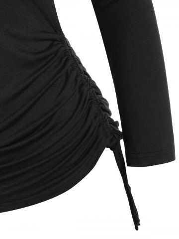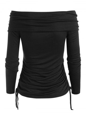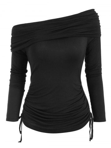 Foldover Off Shoulder Cinched T-shirt - Black - 2xl