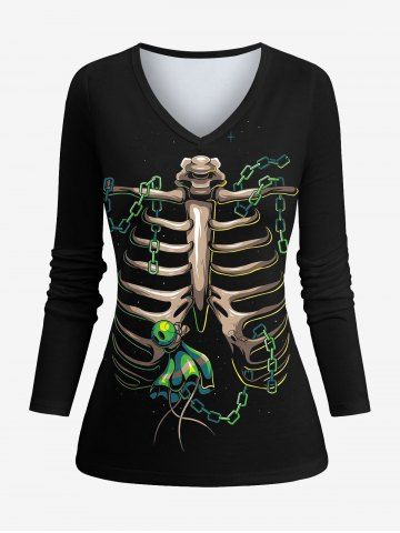 Skull Chain Skeleton Print Halloween Long Sleeves T-shirt - Black - L