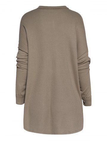 Textured Two Tone Color Mock Pocket Frilled Long Sleeve Top - Deep Green - Xl