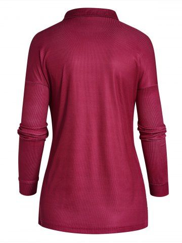 Tribal Geometric Print Long Sleeve Half Zipper Top - Deep Red - Xl