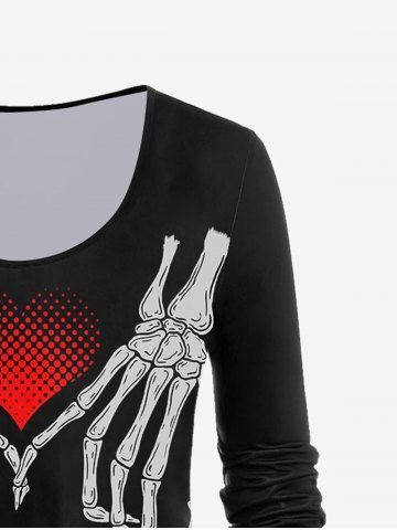 Gothic Heart Skeleton Printed Long Sleeves Tee - Black - 3x | Us 22-24