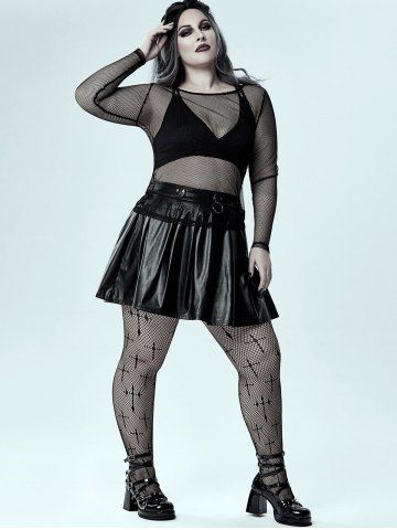 Gothic Sheer Fishnet Long Sleeve Top - Black - L | Us 12