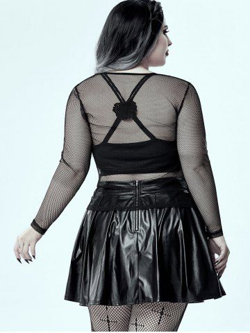 Gothic Sheer Fishnet Panel Buckled Long Sleeve Top