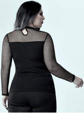 Gothic Sheer Fishnet Panel Buckled Long Sleeve Top - Black - M | Us 10