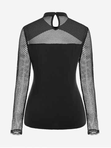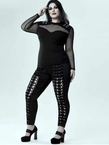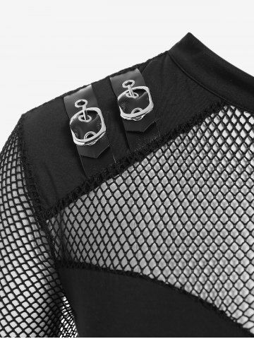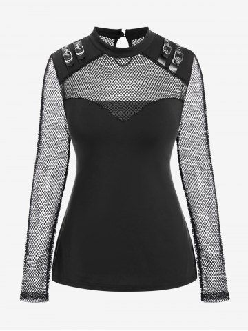 h*****l5Gothic Sheer Fishnet Panel Buckled Long Sleeve TopColor: BLACK Size: M | US 10Runs a little small. Order a size up. Its is super cute and it does fit well. There is not a lot of stretch to it so it does kind of body contour. The button on the back of the neck is a little hard to do with out help.