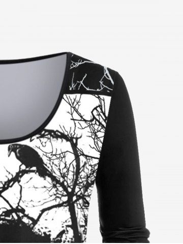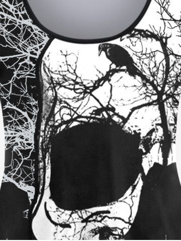 Gothic Skull Tree Branch Print Long Sleeve T-shirt - Black - 4x | Us 26-28