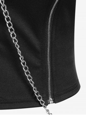 Gothic Punk Chain Lace-up Rivets Zip Front Tank Top