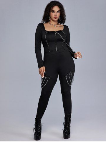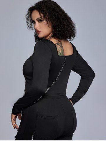 Gothic Square Collar Zip Rings Top - Black - 1x | Us 14-16