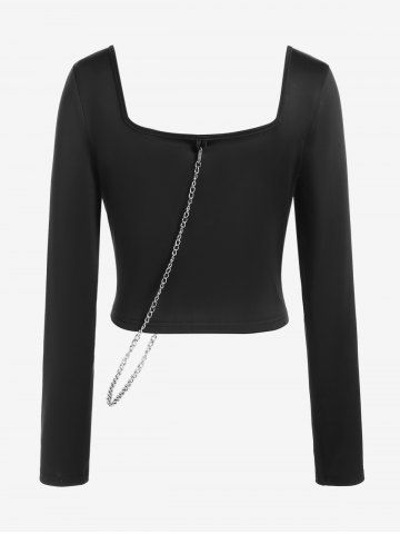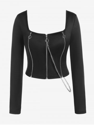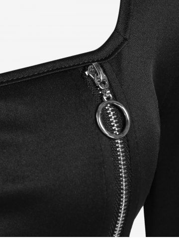 Long Sleeves > Gothic Square Collar Zip Rings Top