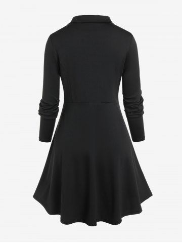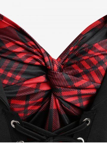 Gothic Plus Size Plaid Colorblock Print Lace Up Half Zipper Patchwork Fit and Flare Dress