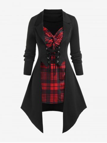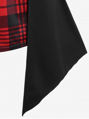 Gothic Checked Panel Twist Lace-up Asymmetrical 2 In 1 Top - Black - 4x | Us 26-28