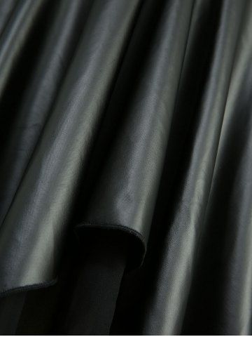 Plus Size Flare Sleeve PU Panel Strappy Layered Handkerchief 2 in 1 Top - Black - L | Us 12