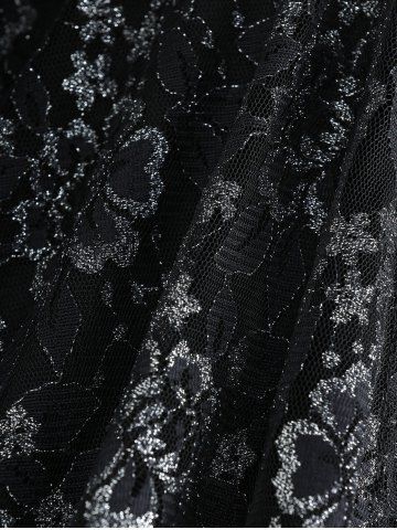 Gothic Plus Size Flare Sleeves Glitter Rose Flower Lace Panel Ruched 2 in 1 Layered Top - Black - 3x | Us 22-24