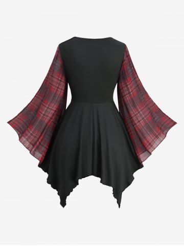 L*****a4Plaid Print Chain Ruched Asymmetric Corset Top and Floral Mesh Flockinig Ribbed Pants Plus Size OutfitColor: BLACKI ware this top so much I'm surprised it's not worn out by now! The pants were oddly too large for me. But they look nice on the hanger.