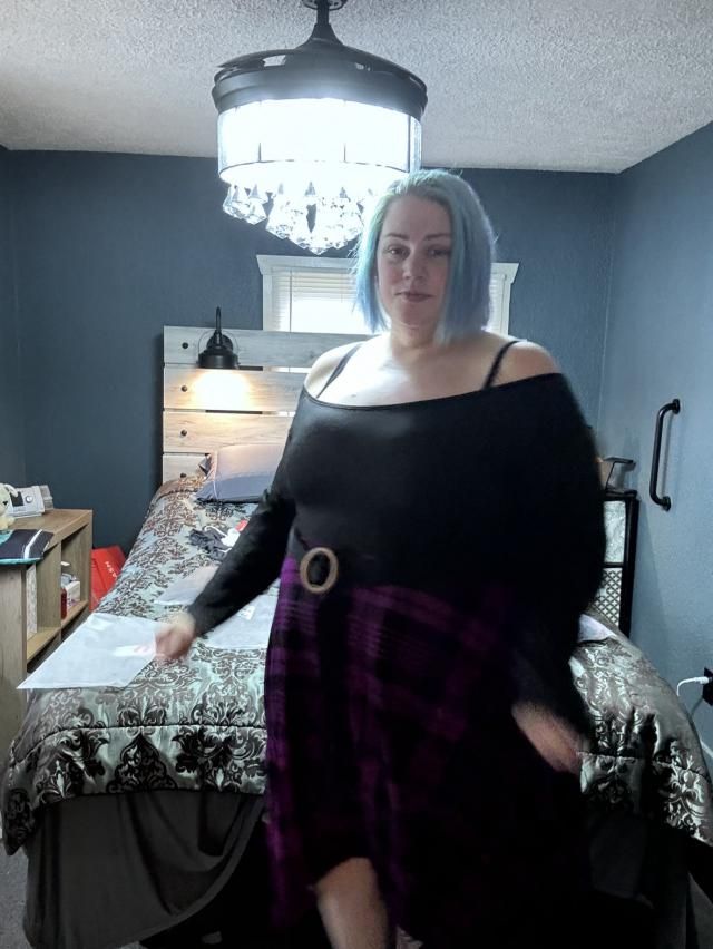 Plus Size Handkerchief Skew Neck Plaid Dress with Sheer Lace Crop Top - Purple - 5x | Us 30-32 V Ery sexy black & purple Dress outfit casual day out . Casual stroll in the park