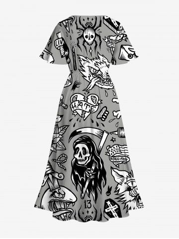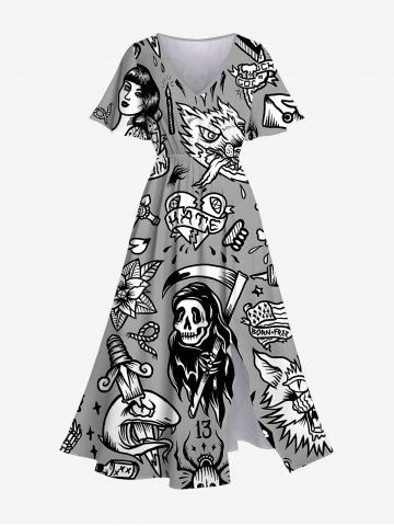 Break Heart Skull Cross Print Plus Size Matching Outfit For Couples - Gray