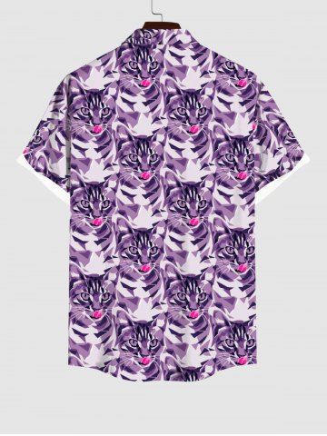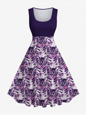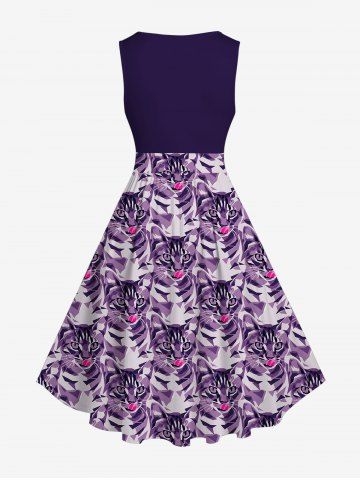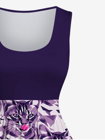 Cat Colorblock Print Plus Size Matching Set For Couples - Purple