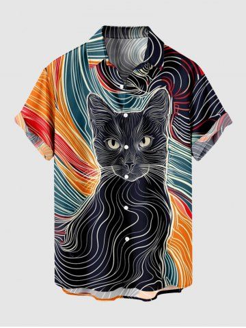 Matching Couple Outfits > Cat Line Fluid Print Plus Size Matching Outfit For Couples