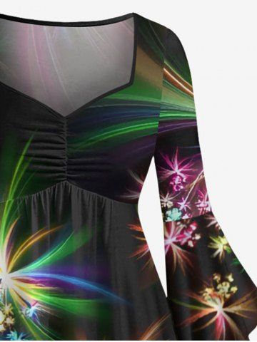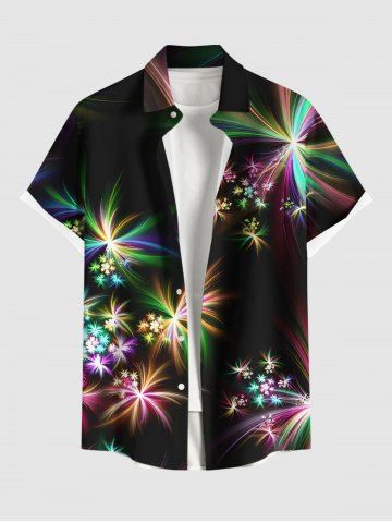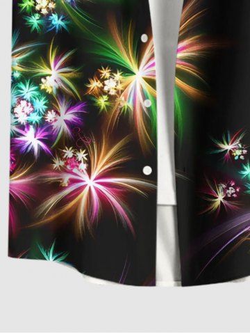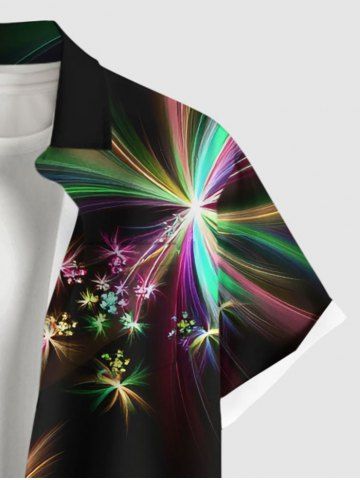 Colorful Glitter Fireworks Floral Print Party New Years Eve Plus Size Matching Outfit For Couples - Black