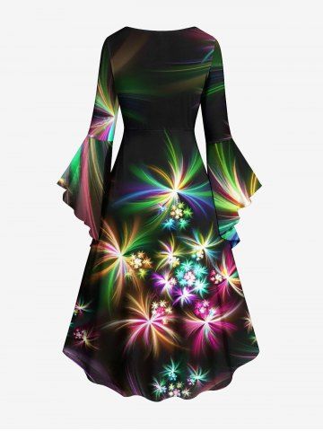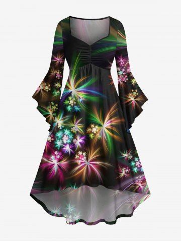 Matching Couple Outfits > Colorful Glitter Fireworks Floral Print Party New Years Eve Plus Size Matching Outfit For Couples