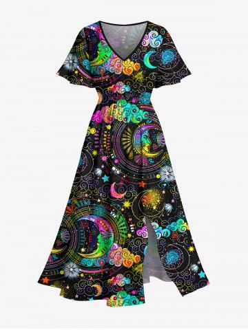 R*****r5Plus Size Colorful Ombre Moon Star Cloud Galaxy Halo Print Split Pocket A Line DressColor: BLACK Size: SThis dress is perfect for any day of the week the fit was just right