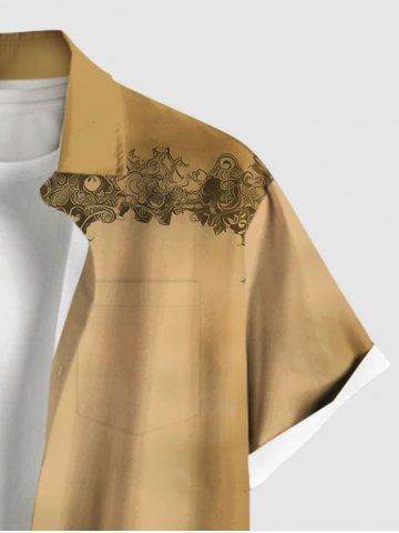 Distressed Skull Flower Print Plus Size Matching Outfit For Couples - Tan