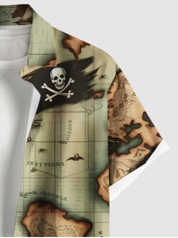 Matching Couple Outfits > Distressed Skull Sailboat Map Steering Wheel Print Plus Size Matching Hawaii Beach Outfit For Couples