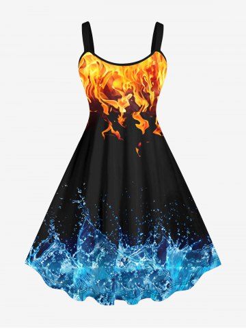 J*****h5Plus Size Fire Flame Water Splatter Printed Backless A Line Tank DressColor: MULTI-A Size: 4XI have multiple dresses all the same model but different printing and it's very comfy.