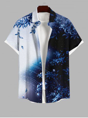 Floral Leaves Ombre Galaxy Print Plus Size Matching Set For Couples - Blue