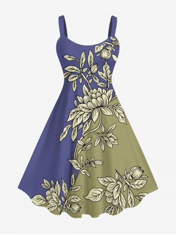 Matching Couple Outfits > Flower Two Tone Colorblock Print Plus Size Matching Set For Couples