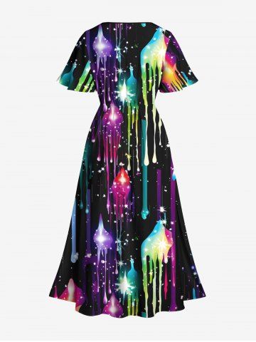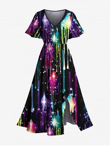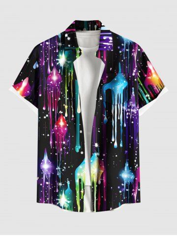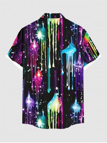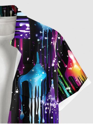 Glitter Galaxy Stars Colorful Paint Drop Print Plus Size Matching Outfit For Couples - Black
