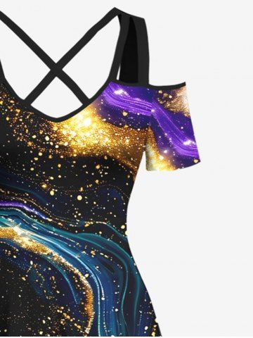 Glitter River Galaxy Print Plus Size Matching Hawaii Beach Outfit For Couples - Black